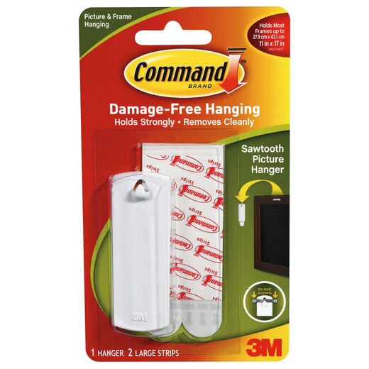 3M Command Sawtooth Picture Hanger (0) No Reviews yet $5.79 SKU: 05113170536 An internal error has occurred Amount * Quantity -+ Add to Cart Details Damage-Free Hanging No nail holes Weight Capacity: 4 pounds Size: Large Made by 3M DetailsBackDetailsDamage-Free Hanging No nail holes Weight Capacity: 4 pounds Size: Large Made by 3M Reviews 0 BackRatings & ReviewsNo reviews availableBe the first to Write a Review